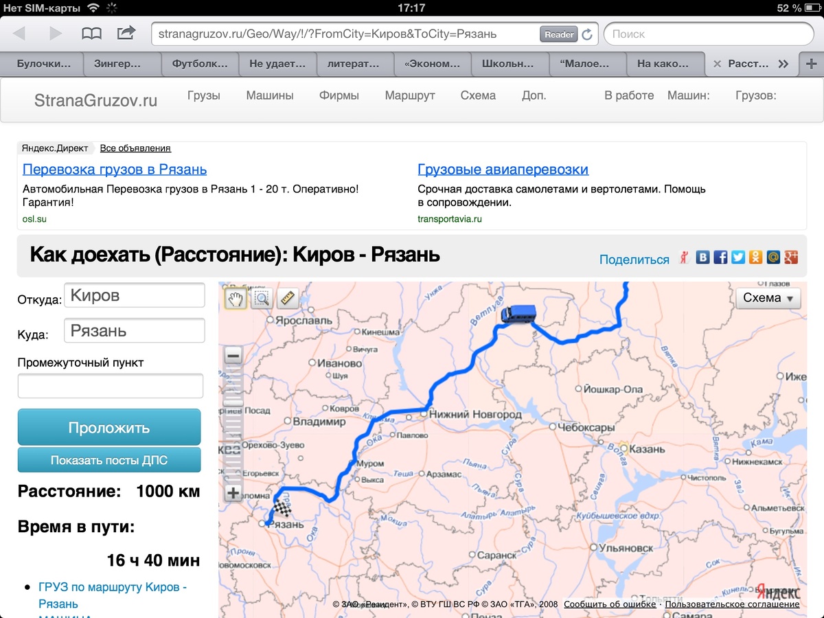 Расстояние по автодороге от Кирова до Рязани составляет 984 километров