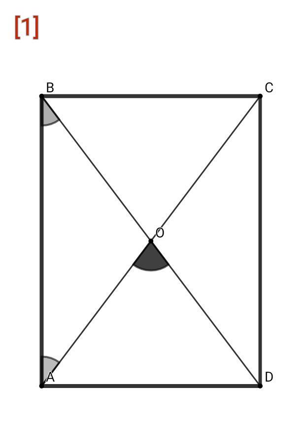 По свойству прямоугольника его диагонали равны и точкой пересечения делятся пополам, при этом образуя две пары равных и равнобедренных треугольников ⇒ АО = СО = ВО = ОD ⇒ ΔAOB - равнобедренный, так как АО = ВО. Углы при основании равнобедренного треугольника равны: ∠АВО = ∠ВАО = 36°