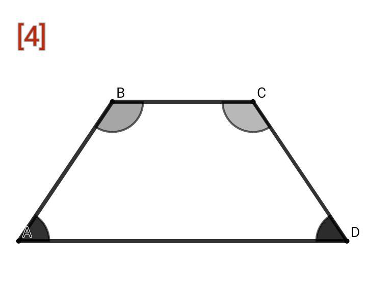 4.В равнобедренной трапеции сумма углов при большем основании равна 96 градусов. Найдите углы трапеции.