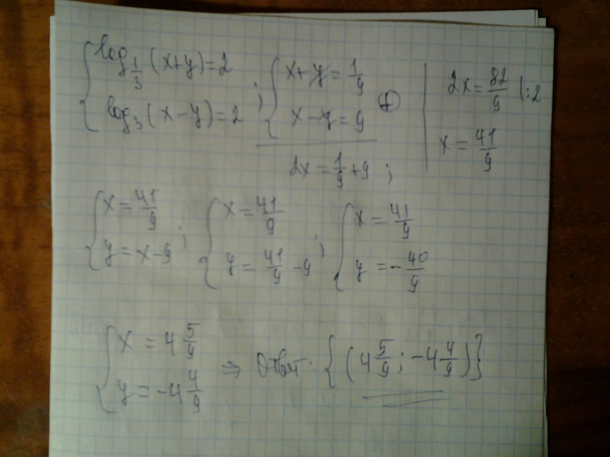 ОДЗ: х>-у и х> у. Полученные корни удовлетворяют ОДЗ.
