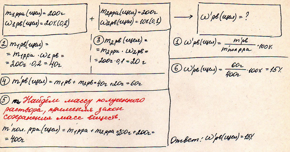 к 200 г 20% раствора щелочи добавили 200 г 10% раствора той же щелочи. Определите массовую долю щелочи в полученном растворе