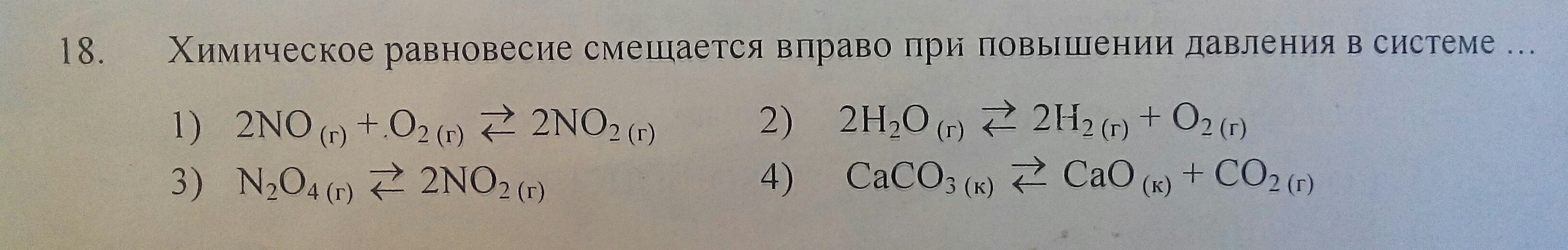 1) - при повышении давления химическое равновесие смещается в сторону меньшего объёма веществ