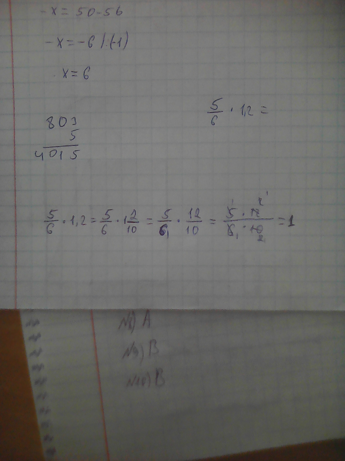 5/6×1.2=(5 × 1.2)/6=6/6=1