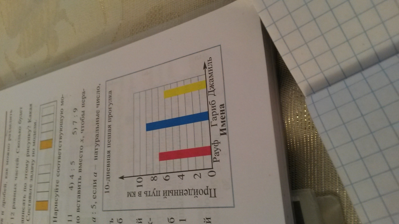 на диаграмме показано какой путь прошли гуляю пешком зовут рауф,гариб и джамиль за 10 дней.