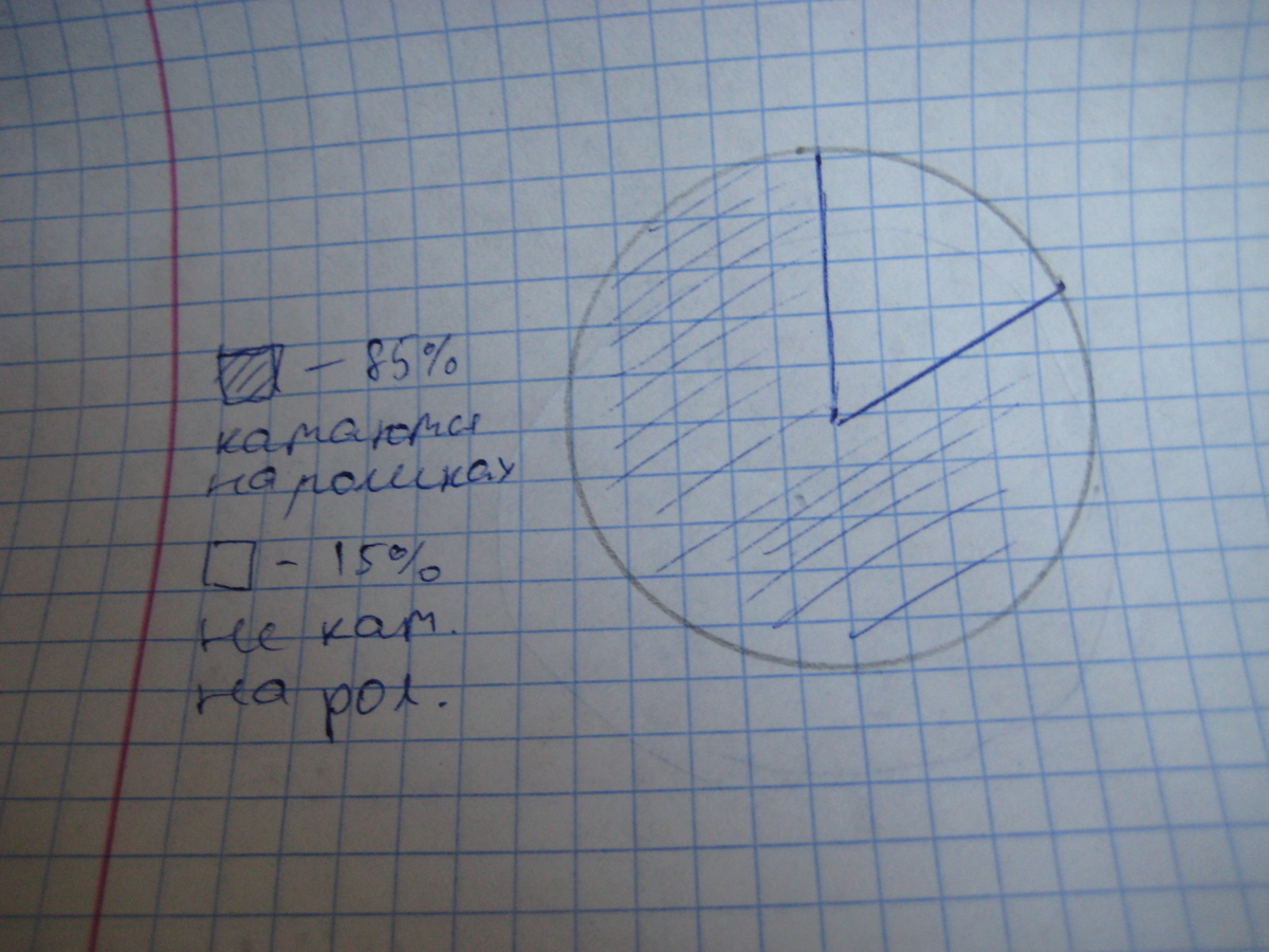 В классе 85% учеников любят кататься на роликах, а остальные - нет. Постройте соответствующую круговую диаграмму.