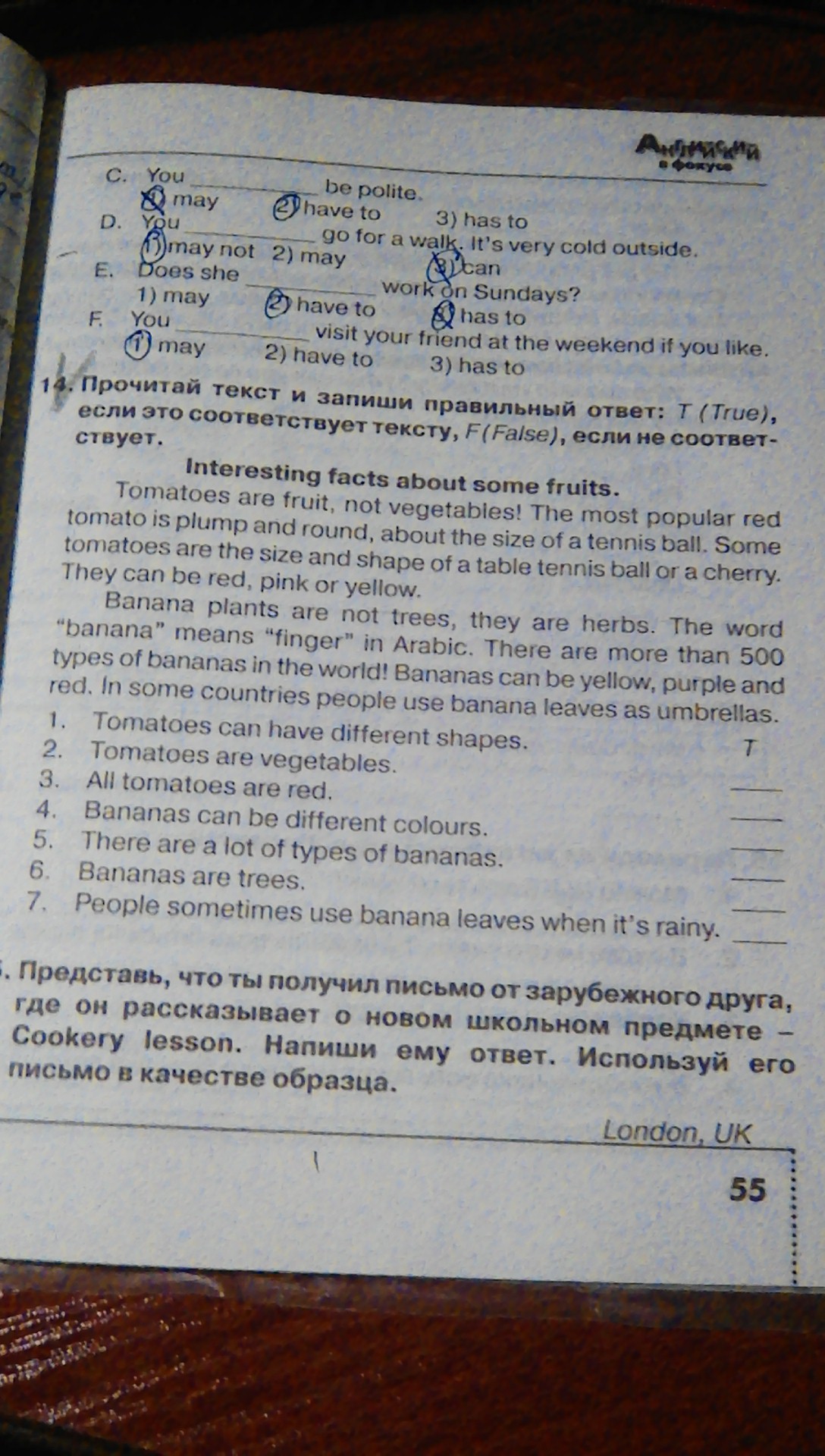 дословно текст не переведу , но сказано про то , что томат - это фрукт , не овощ . Особенно популярны красные томаты и они похожи на теннисный шар или на вишню . Бананы - это не деревья , это трава. Слово банан произошло от арабского " палец " . есть более 500 видов бананов в мире . Бананы могут быть жёлтыми , фиолетовыми или красными . В некоторых странах люди используют бананы как зонты.