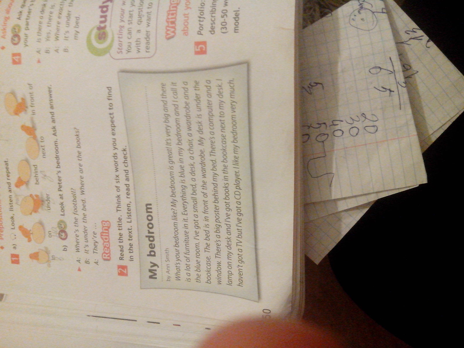 какая твая спальня? Моя комната великолепная! Она большая и там много мебели. Всё в моей спальне голубое и я зову её голубой комнатай.