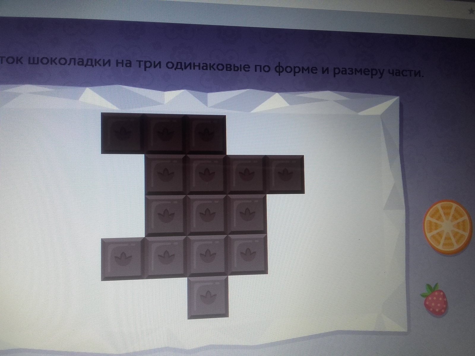 раздили остаток шоколадки на 3 одинаковые по форме и размеру части
