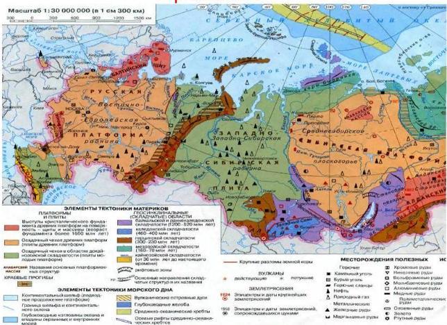 Рассмотрим эту закономерность на примере тектонической карты России,которая приведена ниже в приложении.