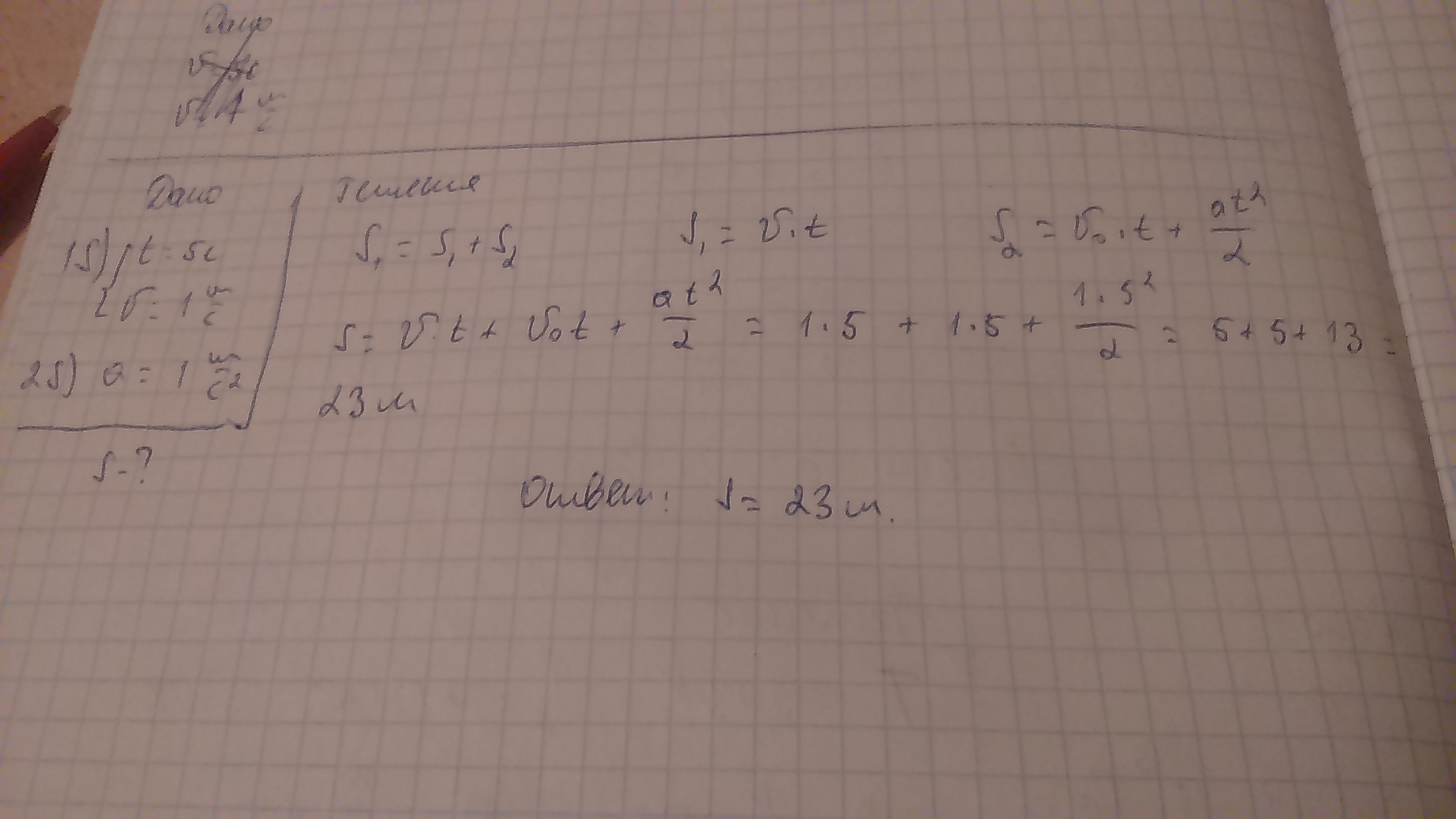 помогите пожаааайлуста((((((какой путь пройдет моторная лодка,если она движется 5 сек с постоянной скоростью 1 м/ сек, а затем с постоянным ускорением 1 м/сек^3?