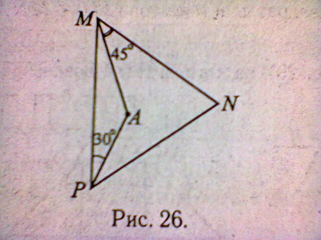в равностороннем треугольнике MNP выбрана точка A,причем угол MNP=45градусов,угол APM=30градусам.Найдите градусную меру угла MAP