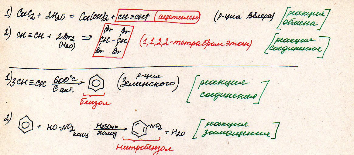 С2Н2-->(кат. активированный уголь, t=600°C) C6H6