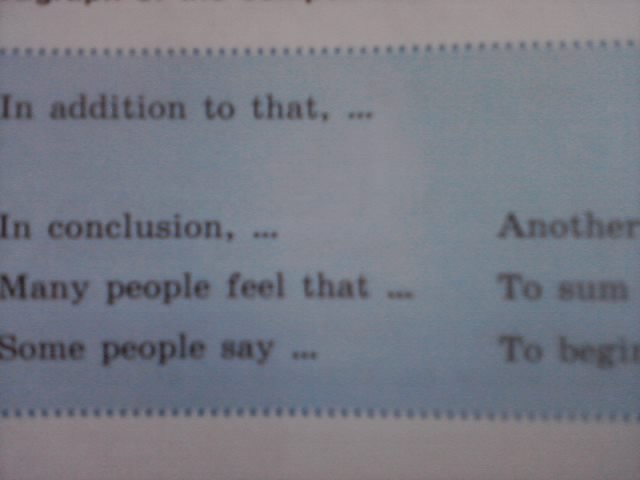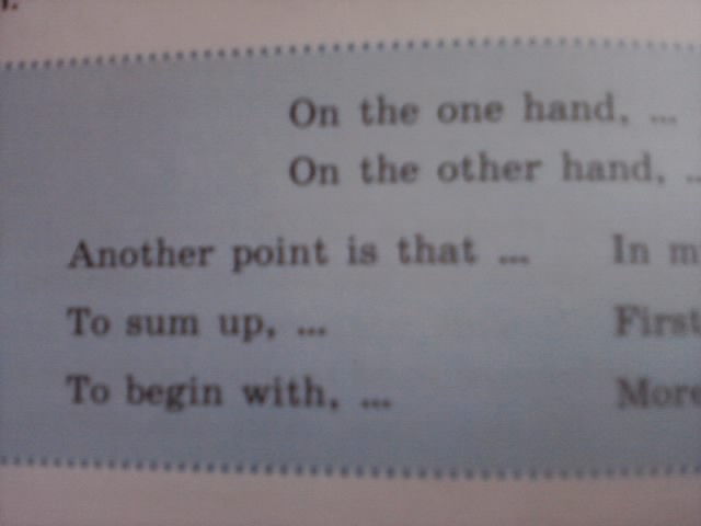 Look through the following phrases and decide which you would use to suit each paragraph of the composition/
