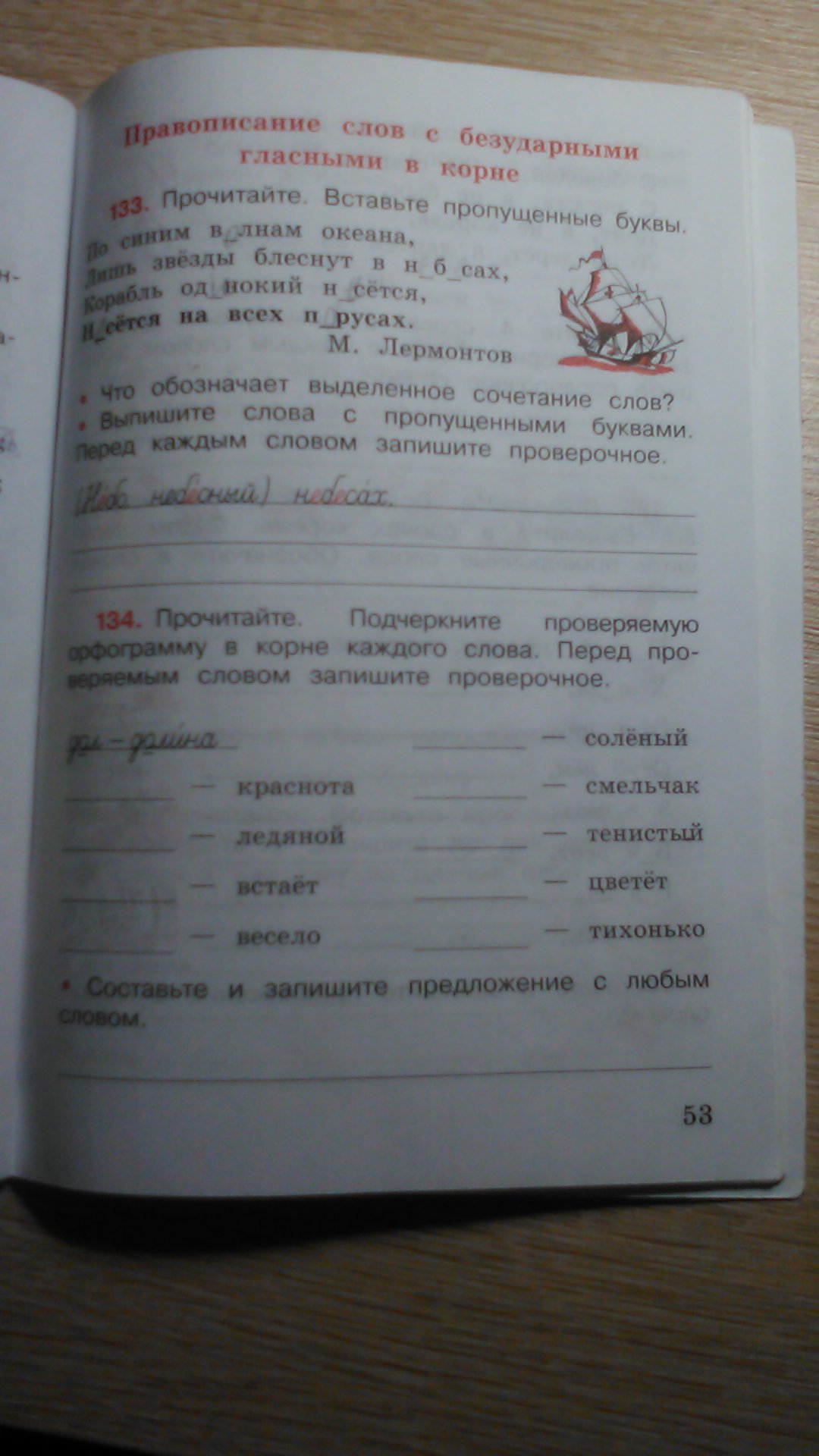 133.волнам(волны) в небесах (небо) одинокий(один) несется(нёсший)