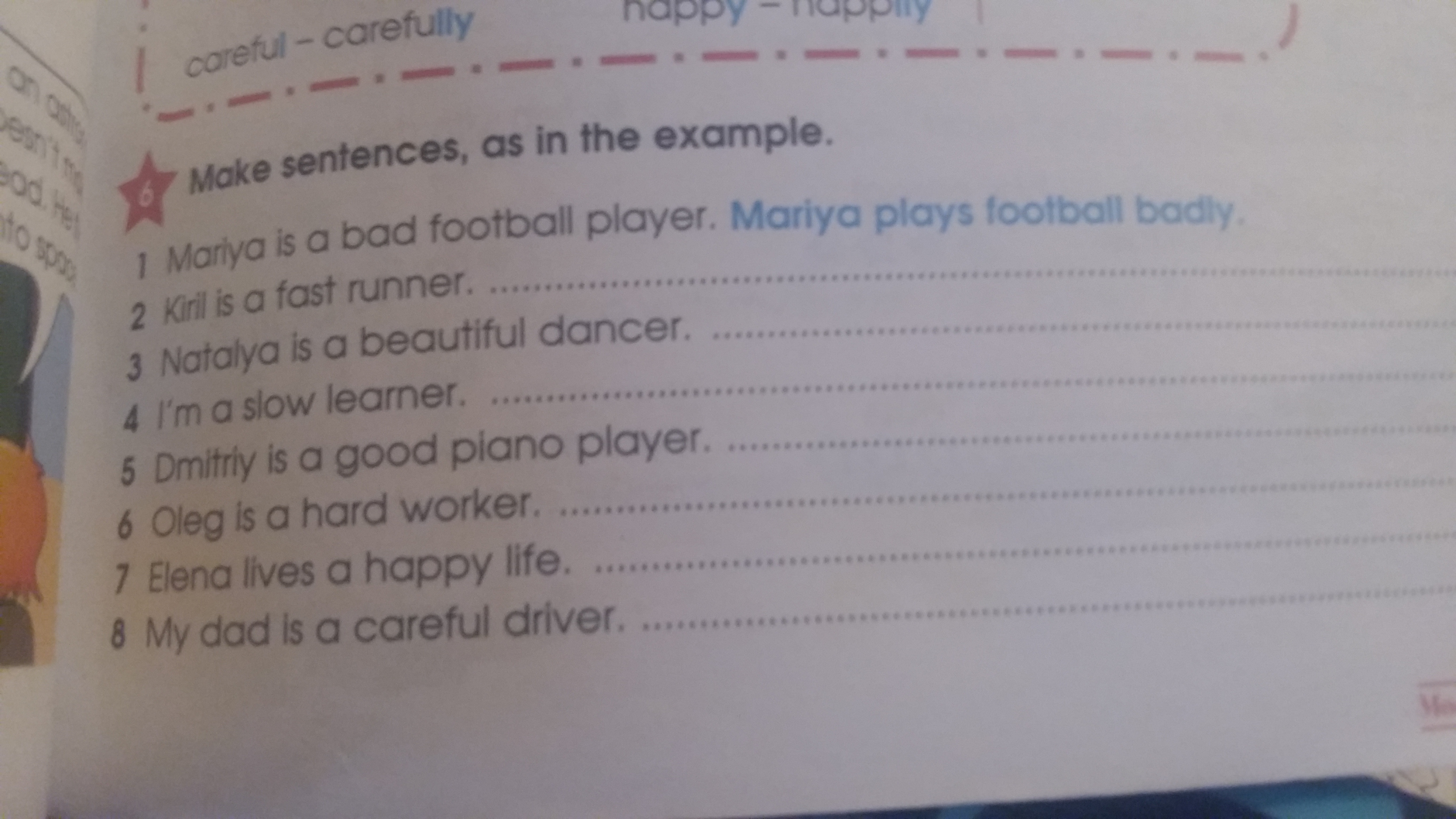 6)Oleg works hardly