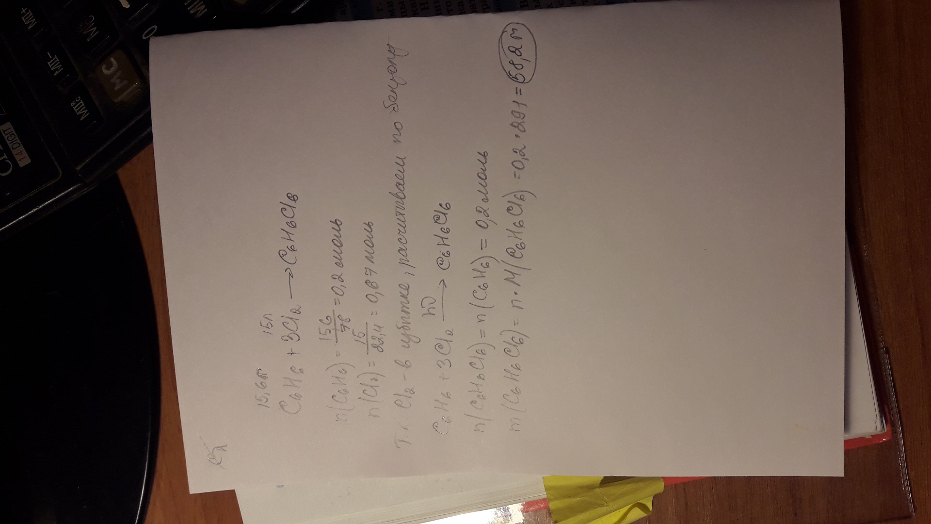 Какую массу продукта реакции можно получить из бензола массой 15,6 г и хлора объемом 15 л (н.у)?Реакция идет при освещении