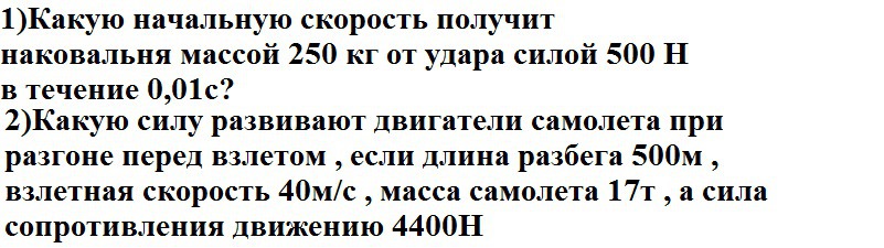 M ( V – vo ) = (F–Fсопр)∆t, где vo – начальная скорость, которая в нашем случае равна нолю: