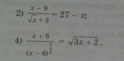1) (х-9)/х^1/2+3=27-х; (х^1/2-3)(х^1/2+3)/(х^1/2+3)=27-х; х^1/2-3-27+х=0; х+х^1/2-30=0;