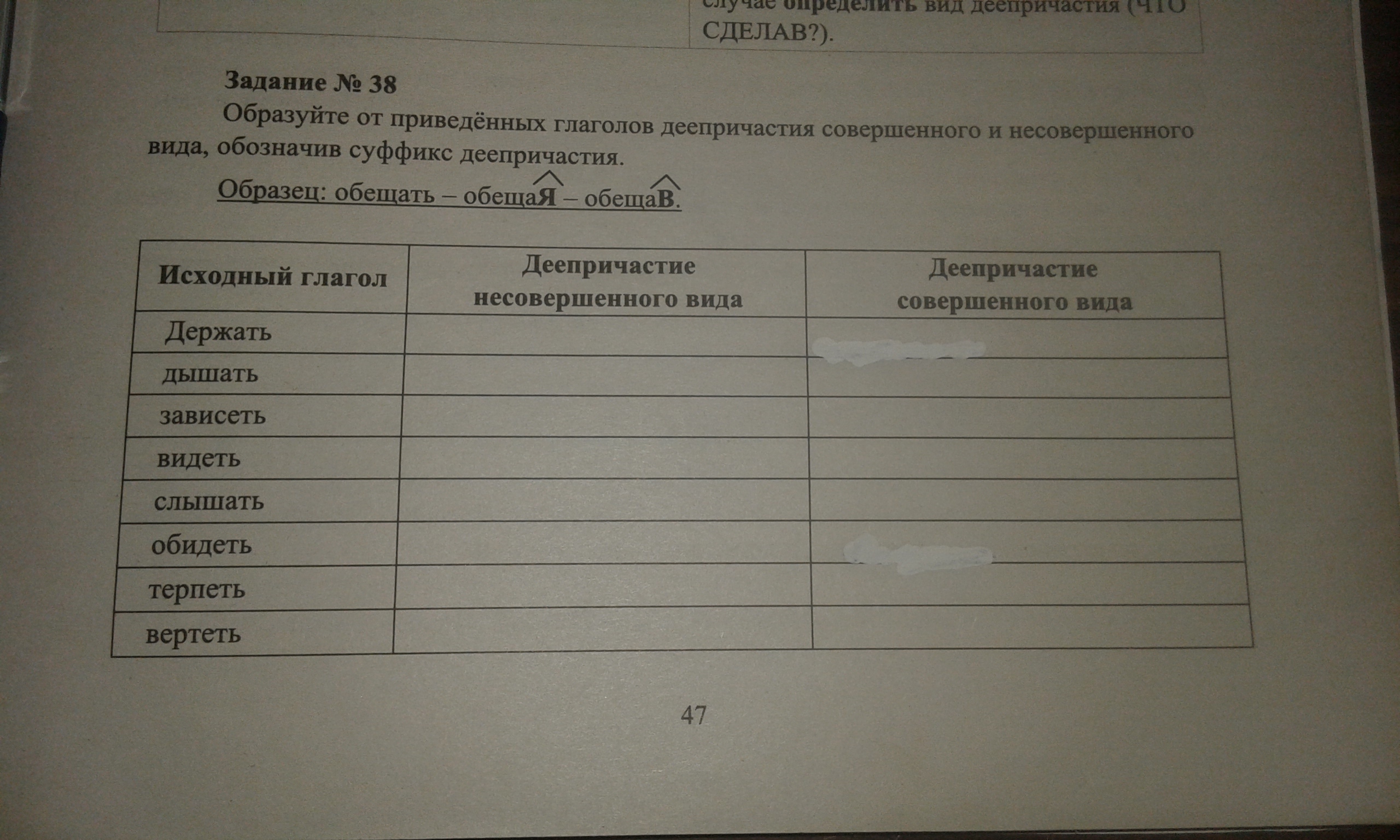 образуйте от приведёных глаголов деепричастия совершенного и несовершенного вида, обозначив суффикс деепричастия