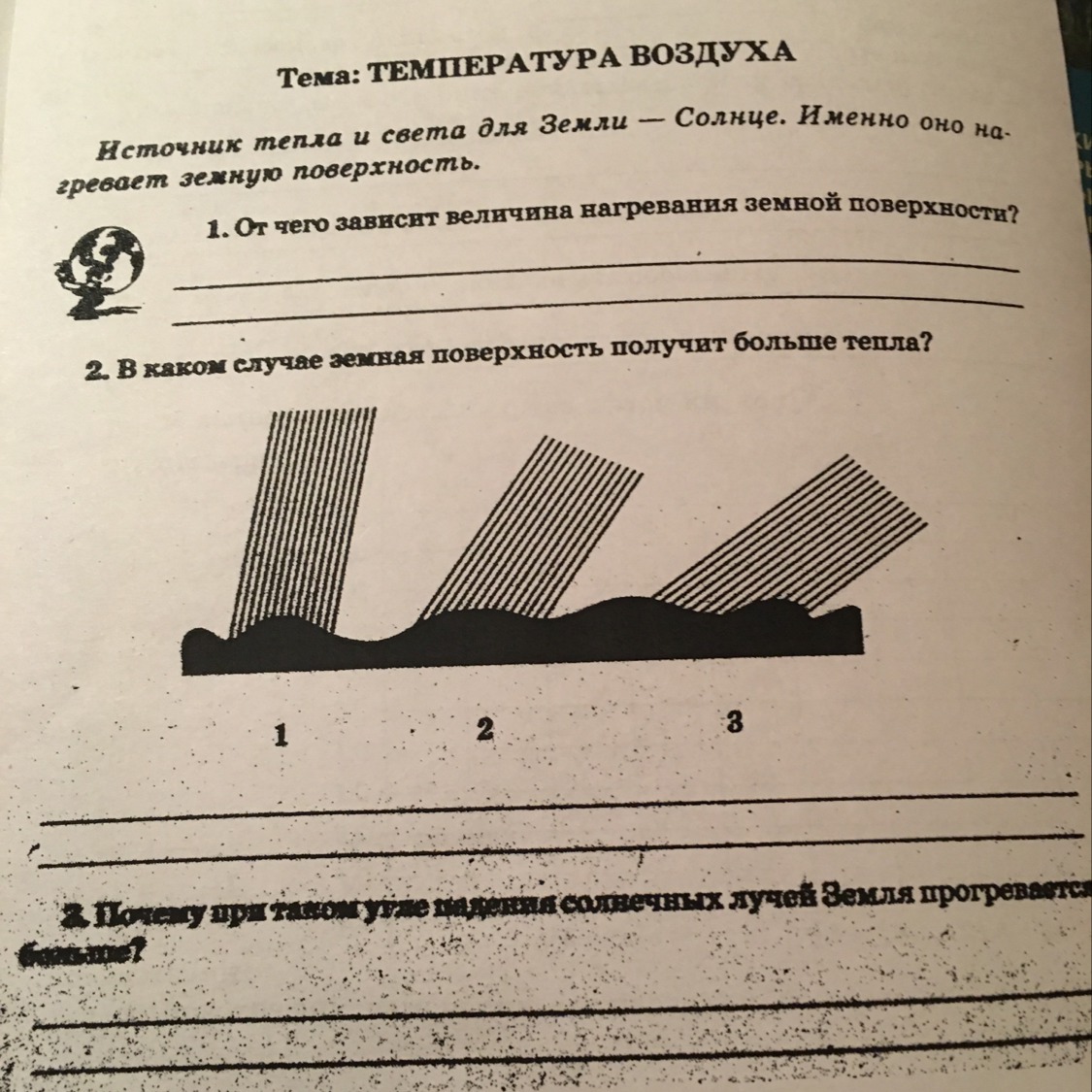 1 Разница в нагревании поверхности Земли зависит от угла падения солнечных лучей на Землю.