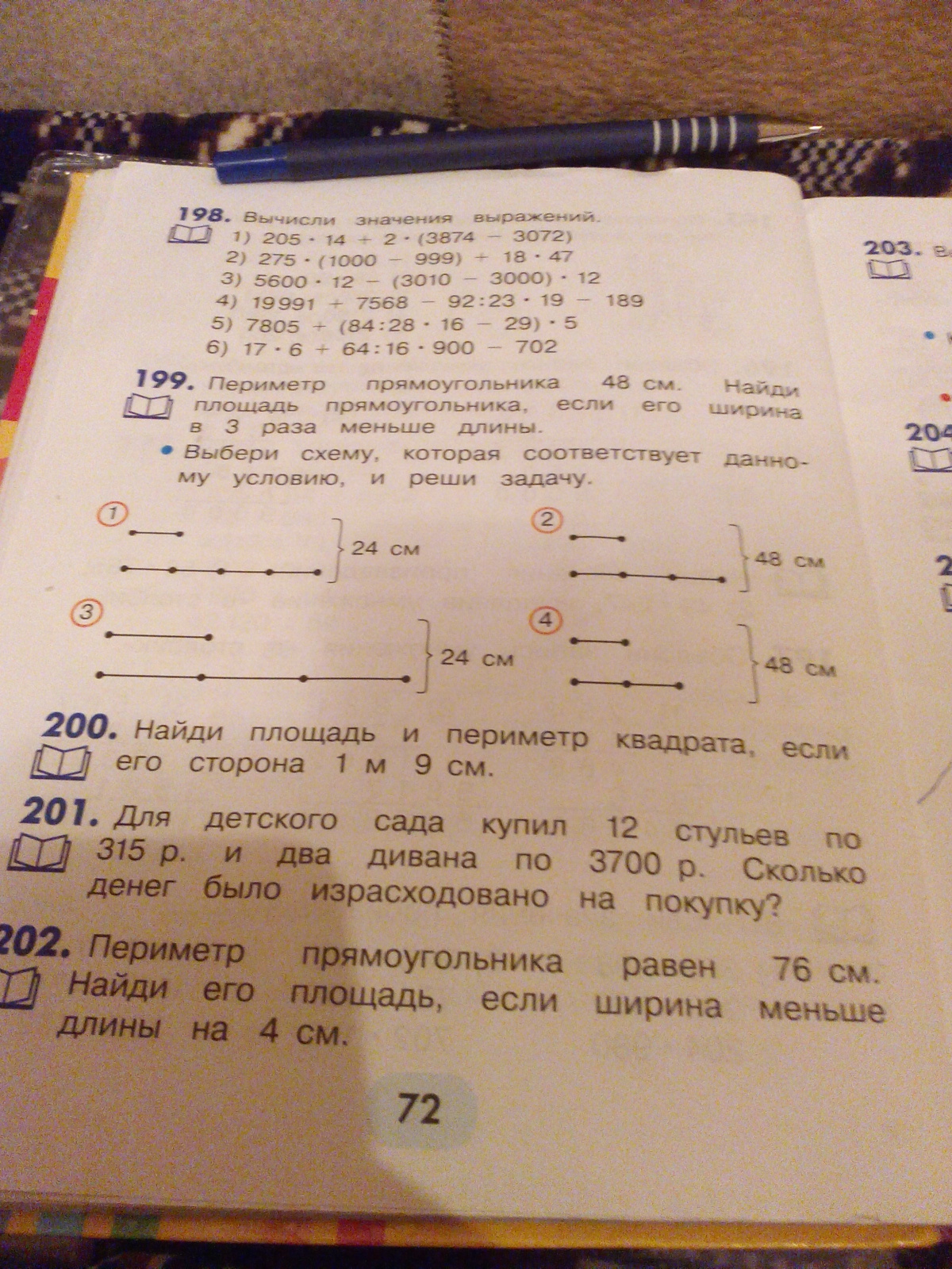 Пиреметр прямоугольника 48см.Найди площадь прямоугольника,если его ширина в 3 раза меньше длины. Это математика 4 класс
