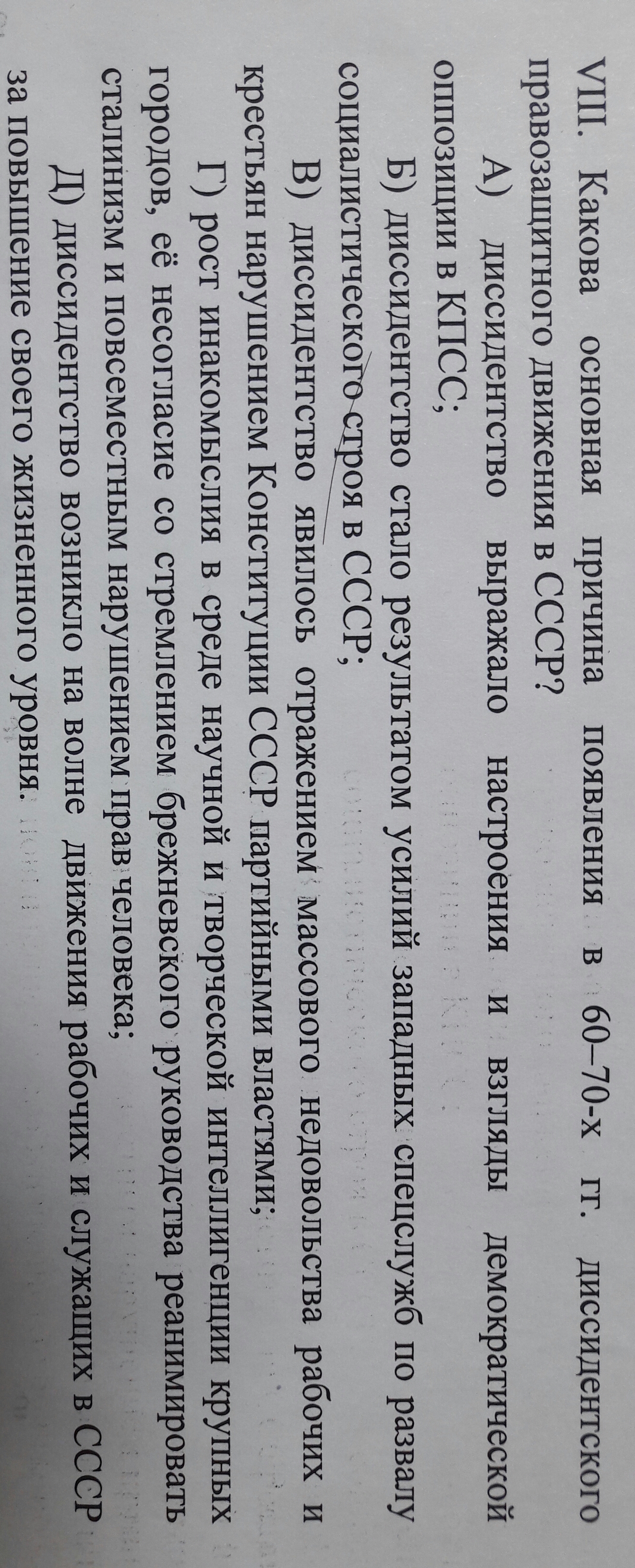 Какова основная причина появления в 60-70-x гг. дессидентского правозашитного движения а СССР?