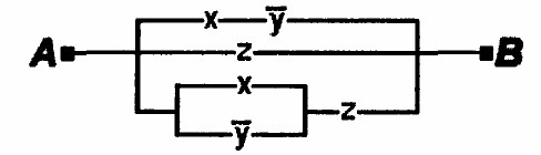 F = x·¬y+z+(x+¬y)z