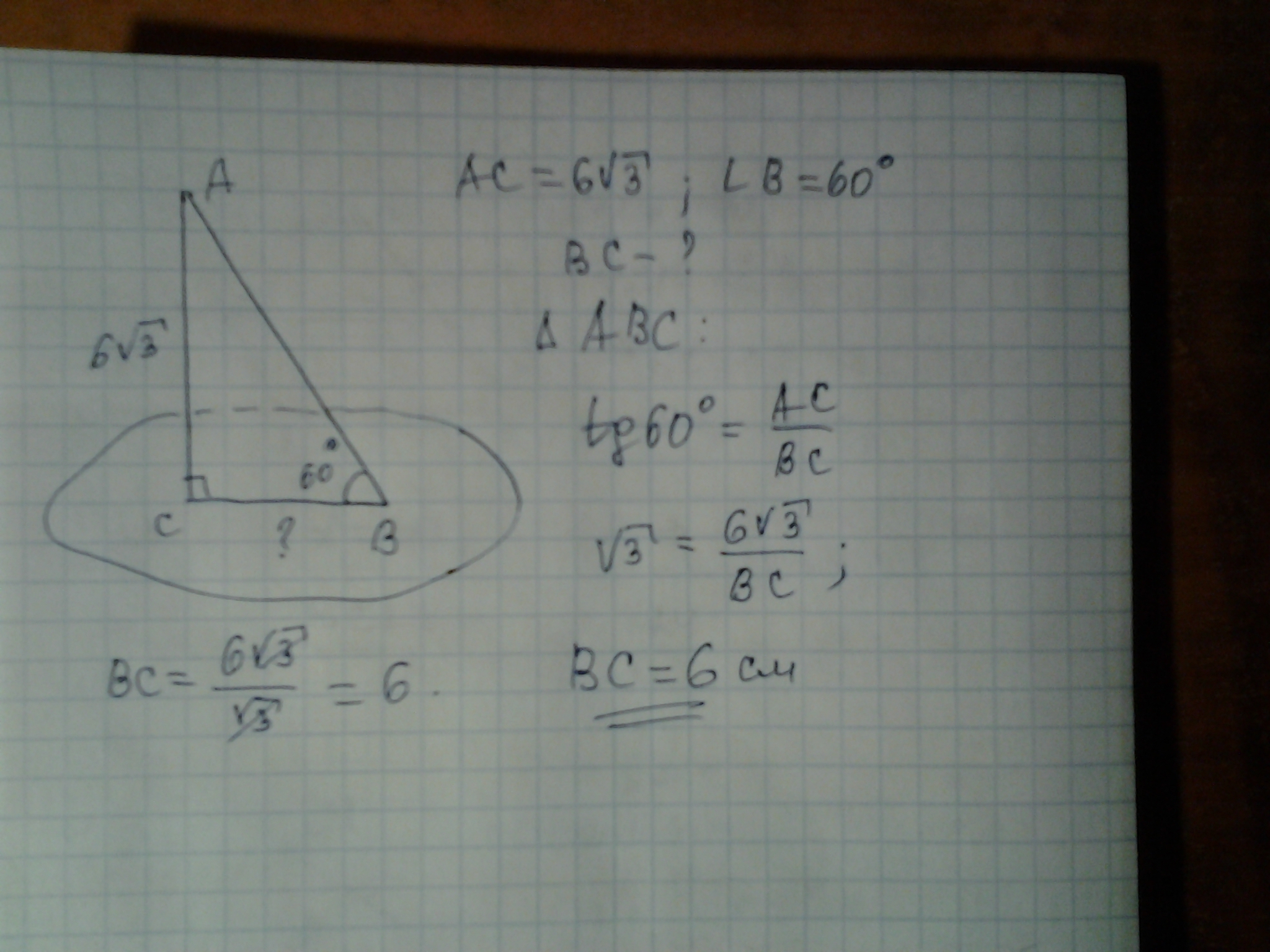 Точка А віддалена від площини на відстань 6 √3 см, Обчислити довжину проекції похилої, проведеної з цієї точки під кутом 60 градусів до площини
