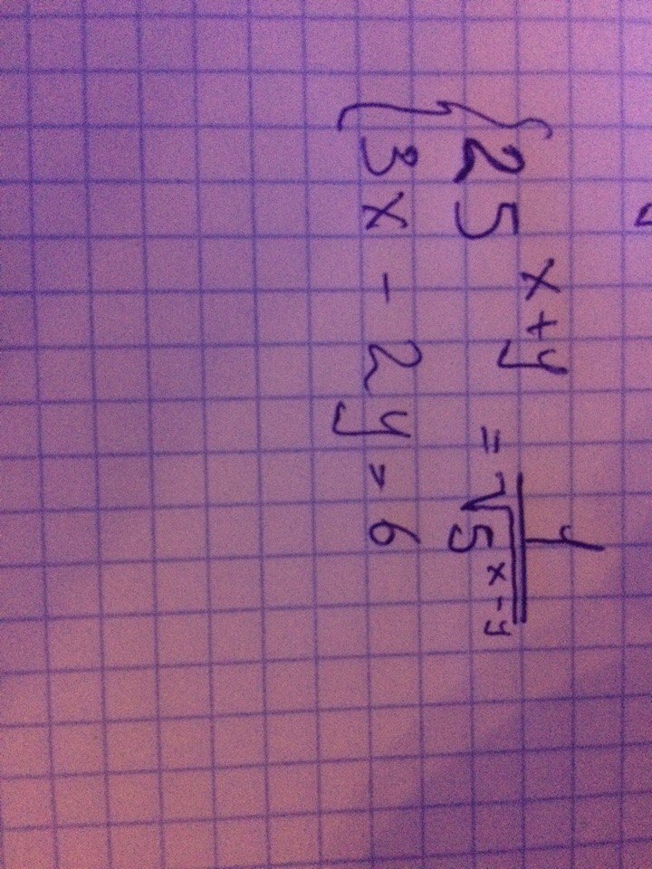 {5^(2x+2y)=5^(y-x)/2⇒2x+2y=(y-x)/2⇒4x+4y=y-x⇒5x+3y=0/*2⇒10x+6y=0
