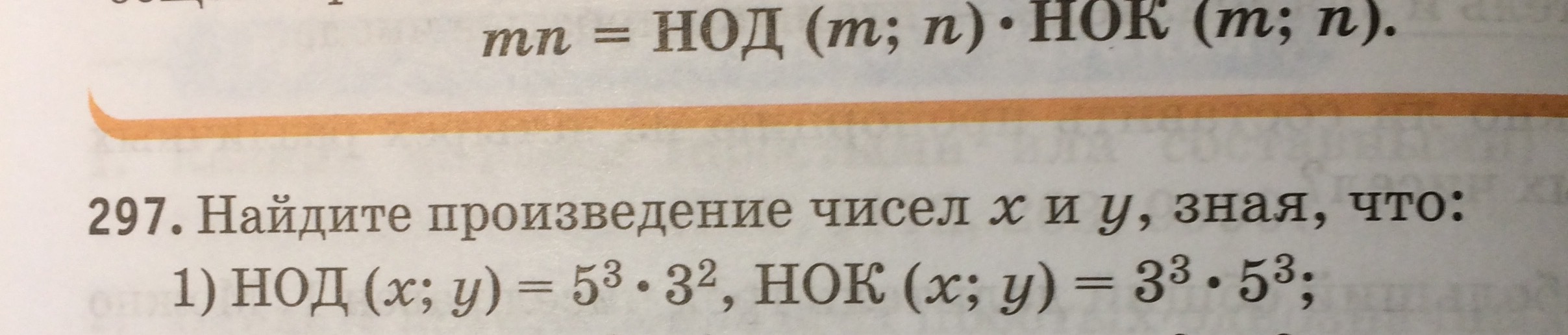 Есть свойство: НОК(х;у)=х*у/НОД(х;у); отсюда: х*у=НОК(х;у)*НОД(х;у); х*у=5^3 * 3^2 * 3^3 * 5^3=3^(2+3) * 5^(3+3)=3^5 * 5^6;