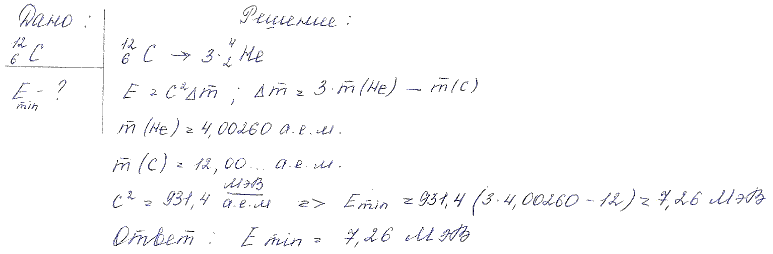 определите наименьшую энергию необходимую для разделения ядра углерода на три одинаковые частицы