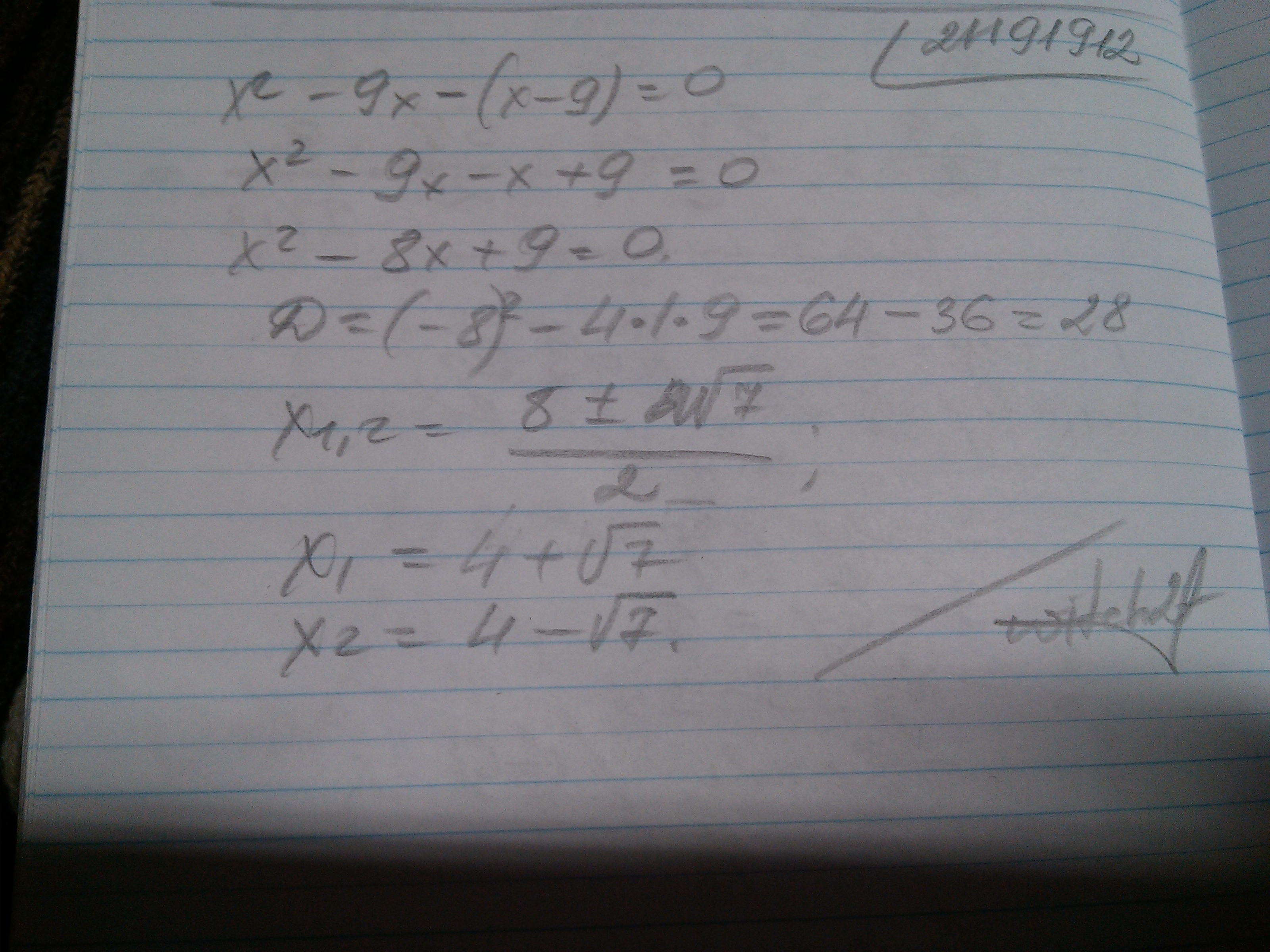 х^2-9х-х+9=0