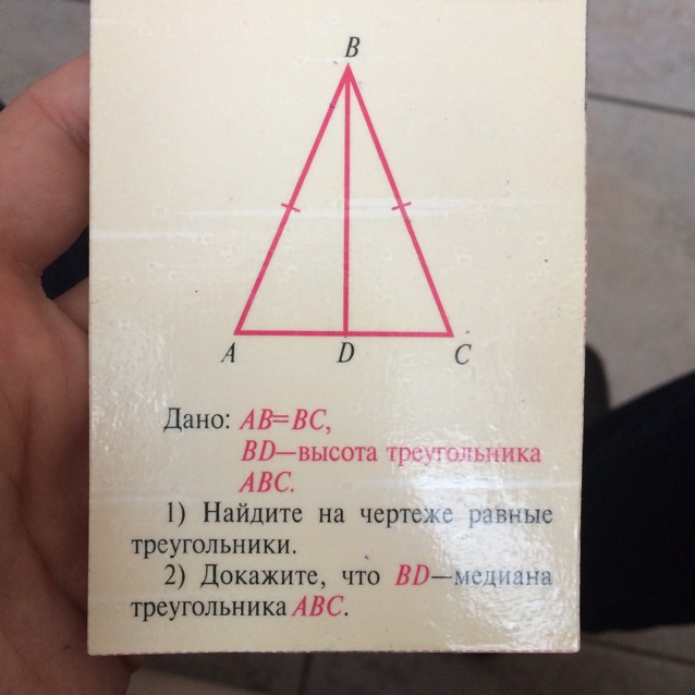 б) BD медиана треугольника ABC так как она выходит из вершины В и делит уголABC по палам