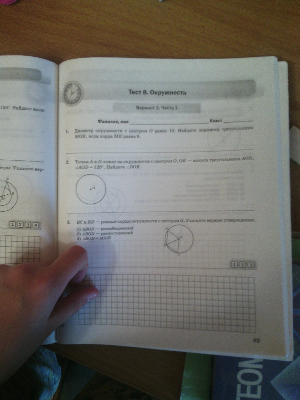 2) треугольник код равнобедренный, т.к. ао=од (радиусы). следовательно высота треугольника ОК делит угол пополам. угол код=60°