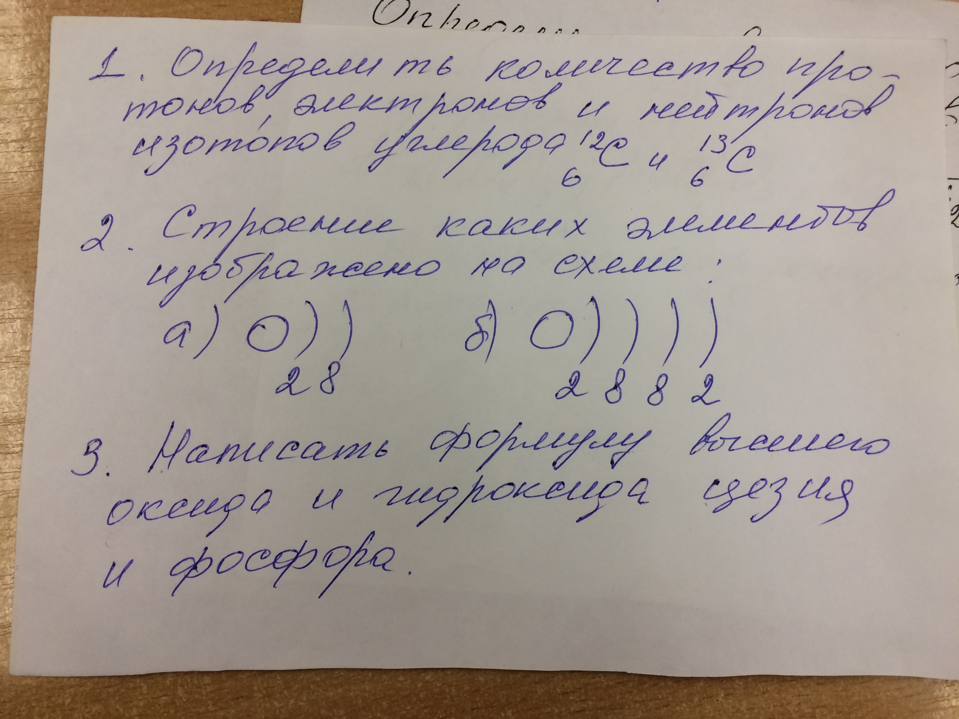 1. 1) 6 протонов, 6 электронов, 6 нейтронов.