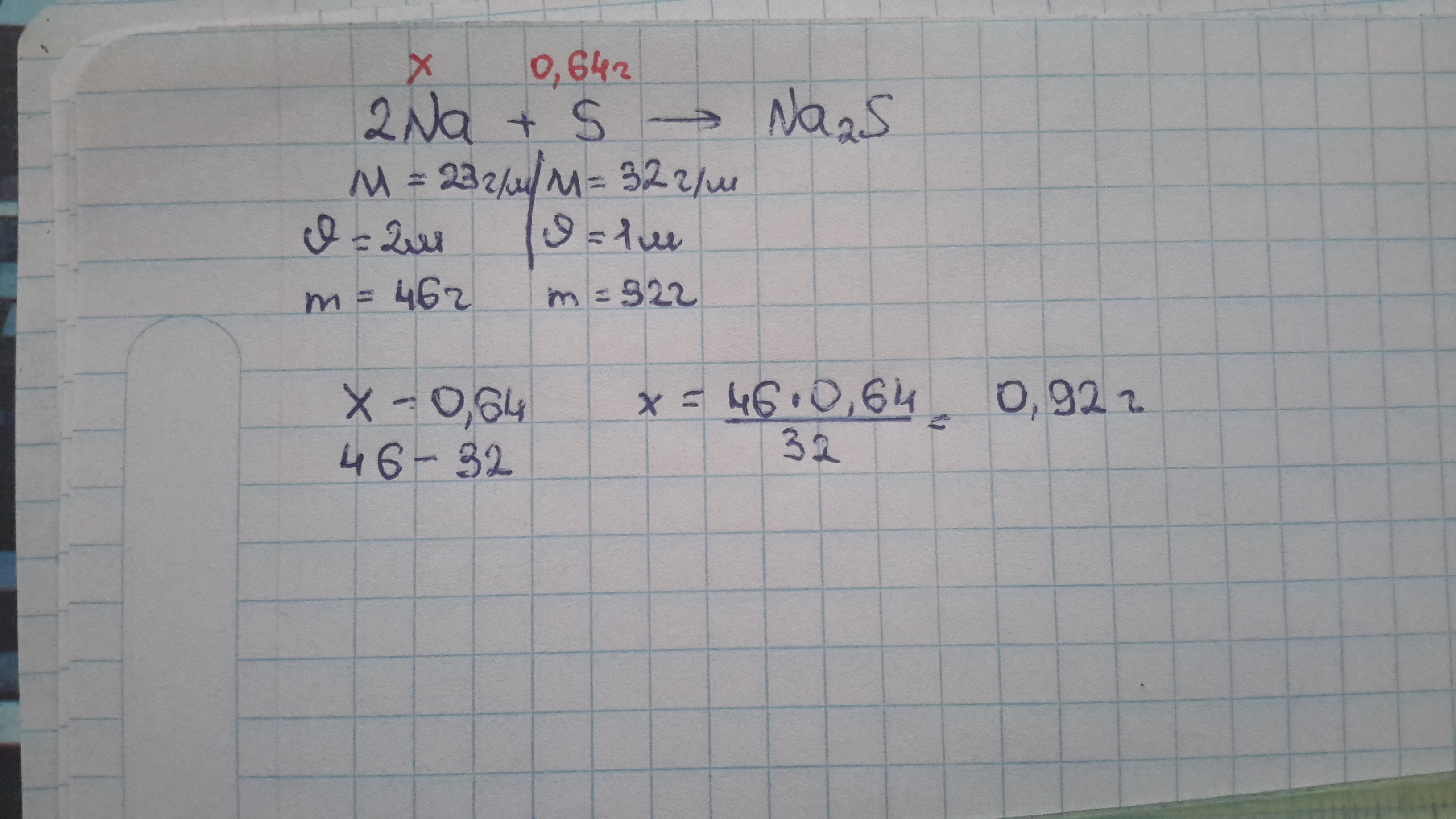 m(Na) = 46 * 0,64 / 32 = 0,92 г