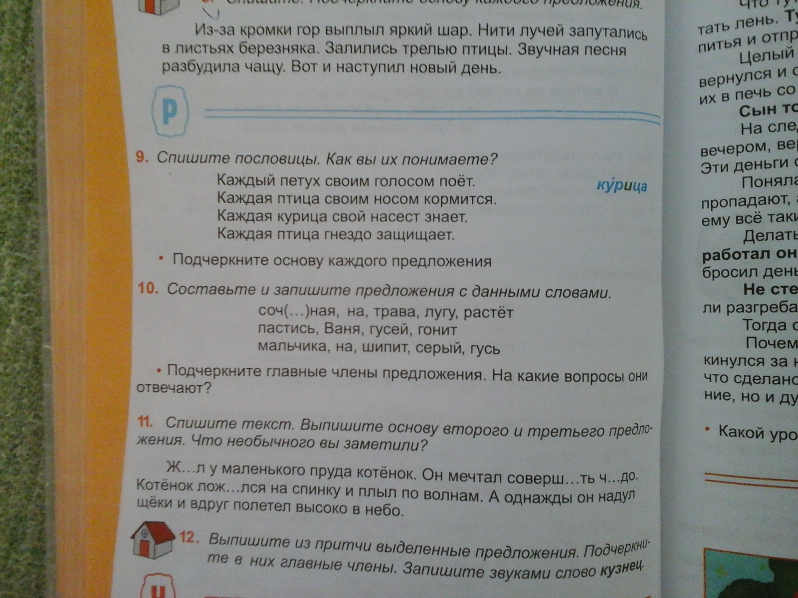 петух что делает? поёт. это сказуемое. двумя чертами.