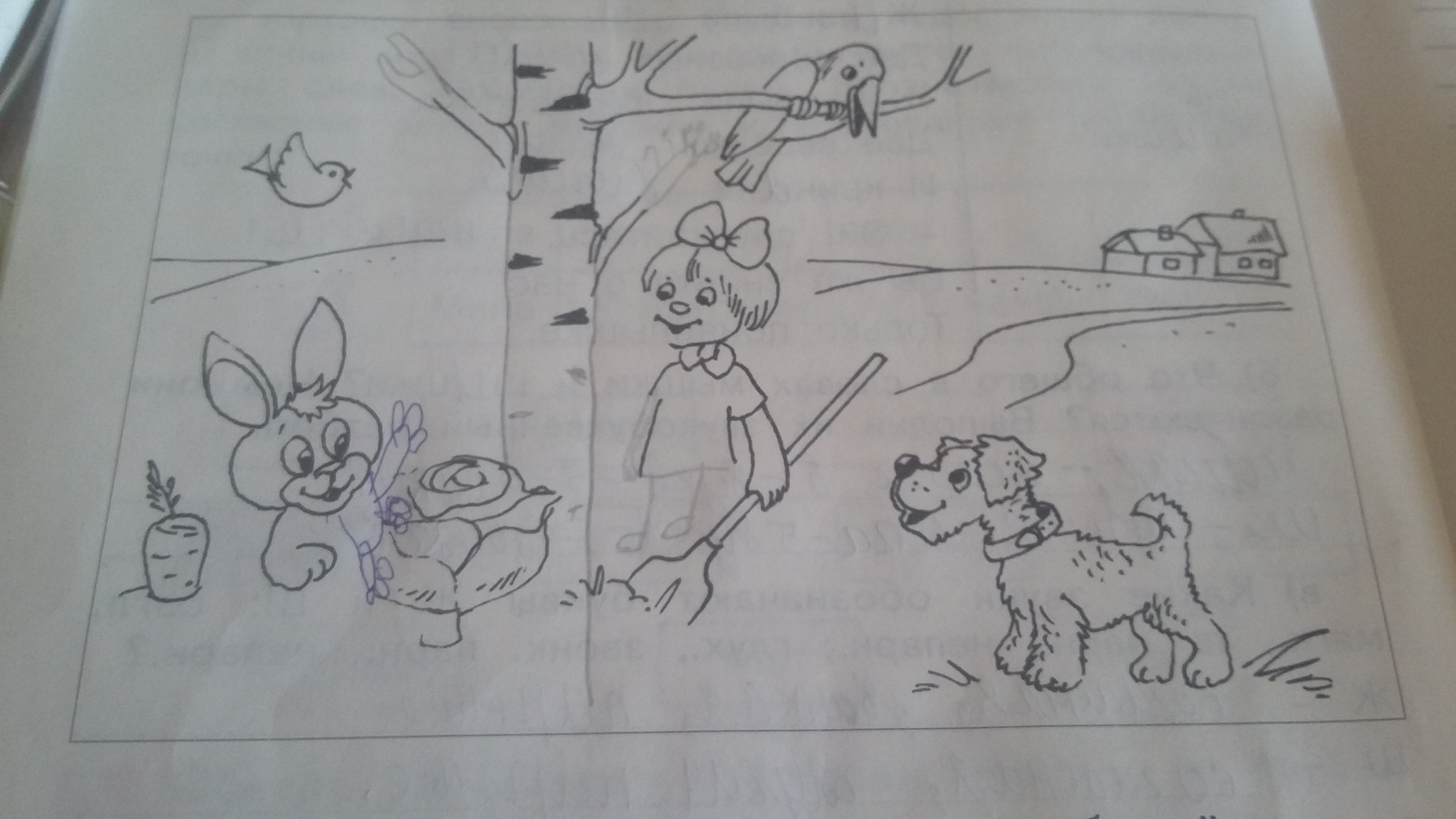 Однажды заяц забежал в чужой огород. И вдруг он увидел девочку и собаку по кличке жучка В деревне Осинкино жила девочка по име Маша и пошла она в свой огород и увидела зайца как он рвал морковь.