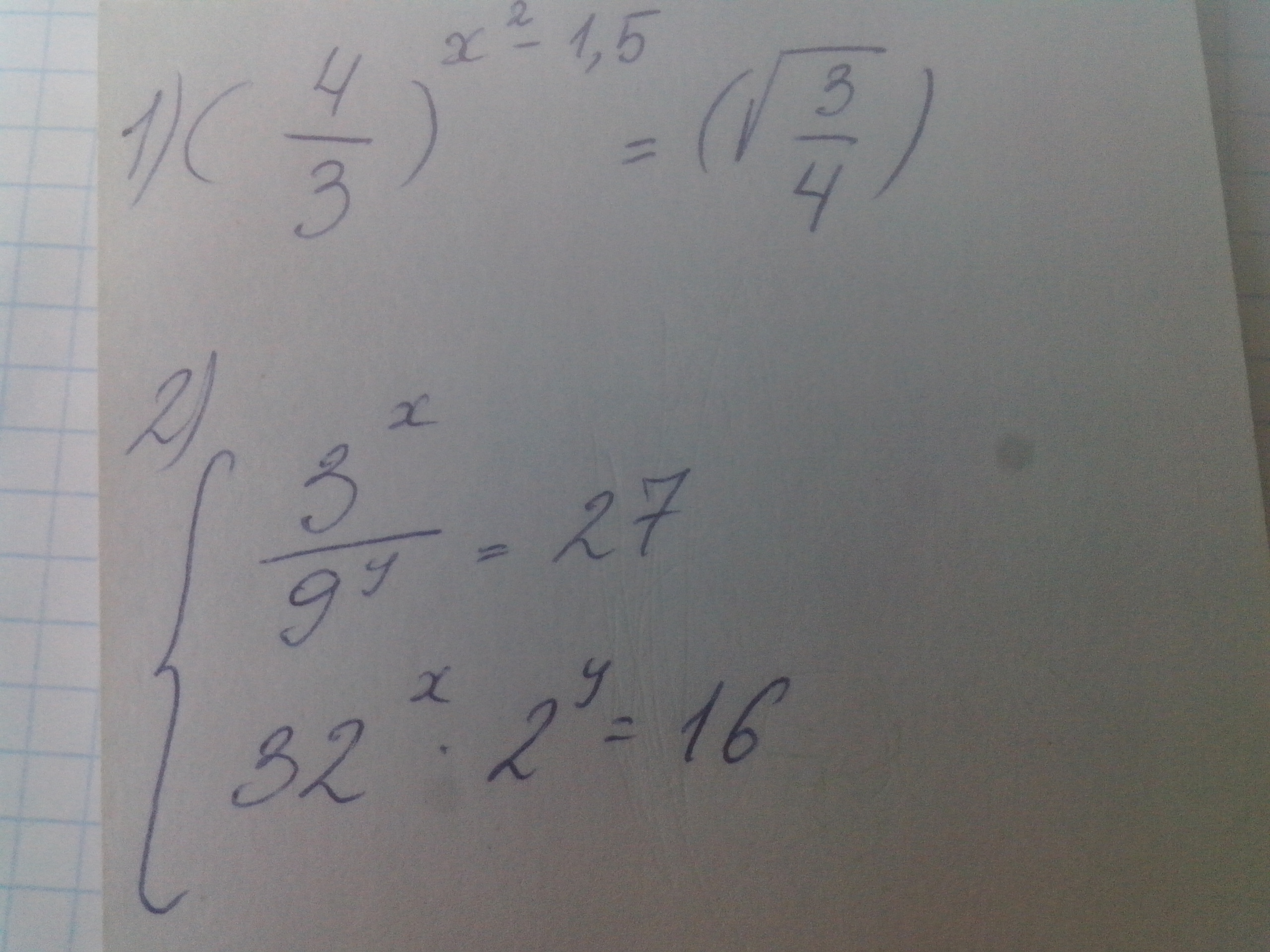 (4/3)^(х^2-1,5)=(4/3)^(-1/2)