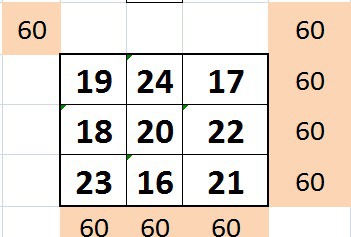 сложи числа в квадрате по строкам, по столбцам,из угла в угол.Если суммы равны,то такой квадрат называеться магическим.Дополни до 20 числа:17,19,18,16,15