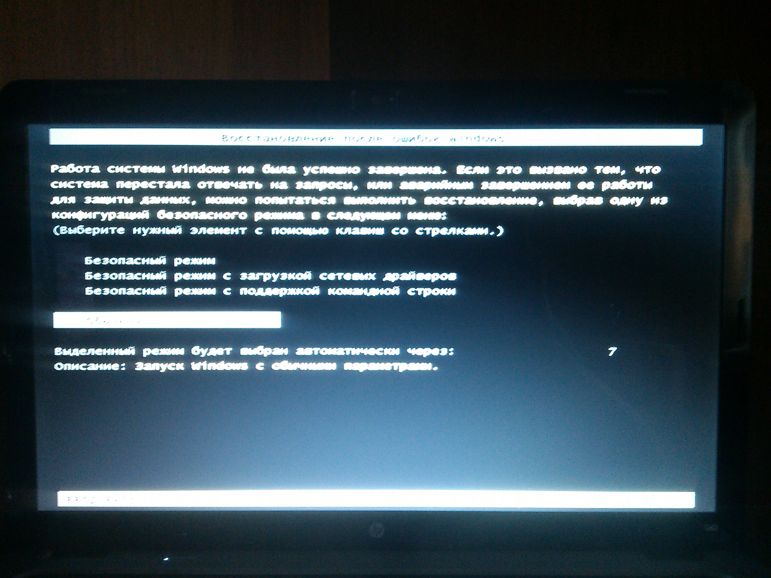 это нормально. просто компьютер был выключен не правильно. может свет отключали, когда он работал. в общем, внезапное отключение. тебе просто надо нажать обычная загрузка Windows (стрелками вниз и вверх можно передвигать серую строчку, нажать можно на пробел или Enter) и всё.