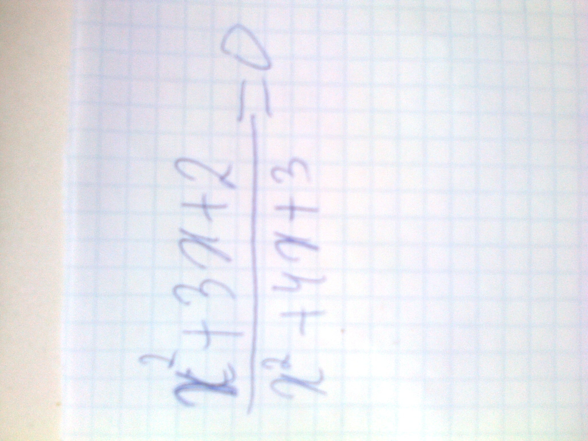 приравниваем числитель к 0: x^2+3x+2=0; D=1; x1=-1; x2=-2; проверим знаменатель: 1-4+3=0, 4-8+3>0; значит -1 не подходит по одз; Ответ: x=-2