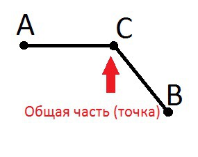 С - это и есть общая точка двух отрезков. (Названия отрезков АС и АВ).