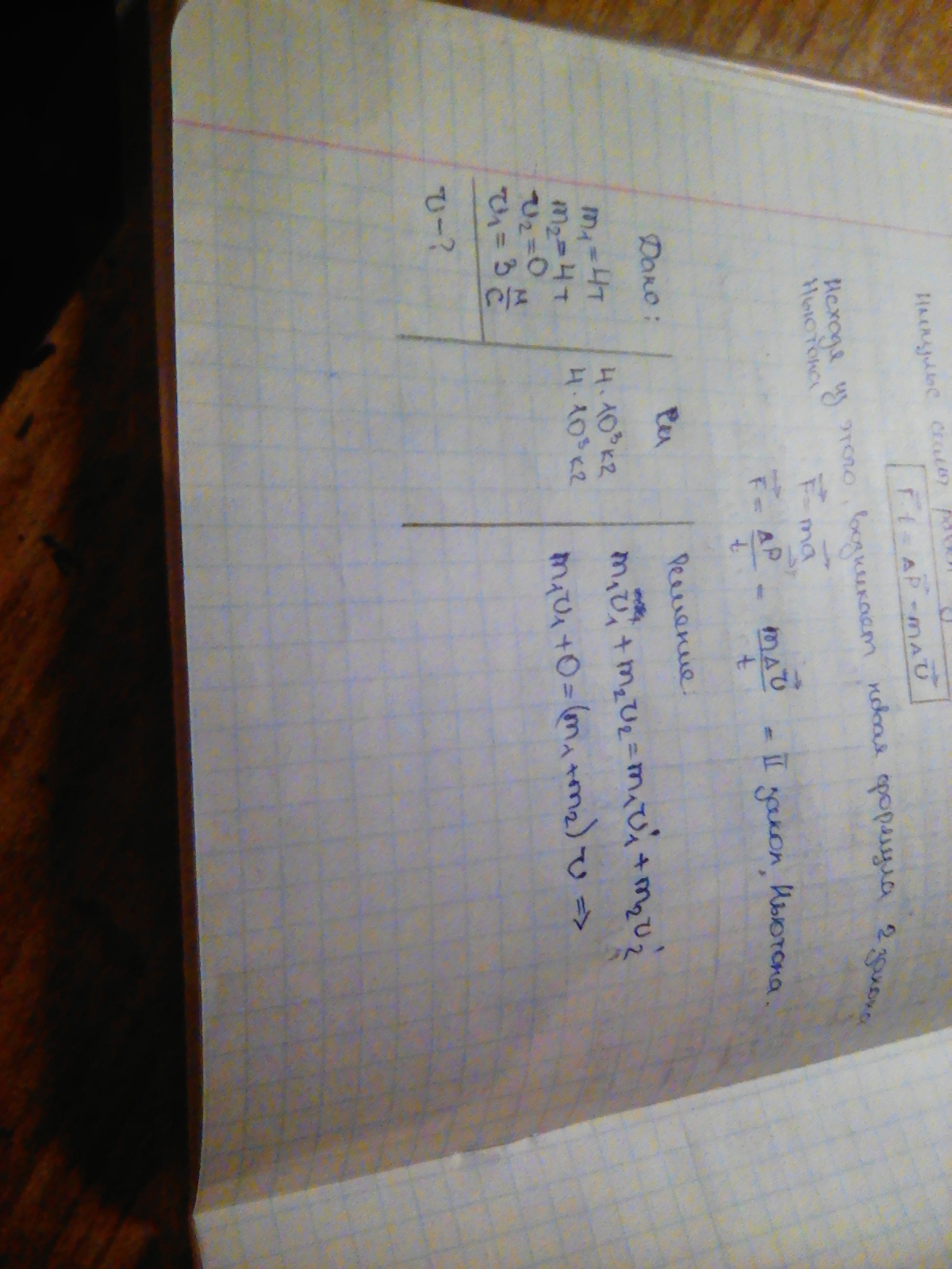 m₁=4 т=4 000 кг m₁v₁+0=(m₁+m₂)v; ⇒ v=m₁v₁/m₁+m₂;