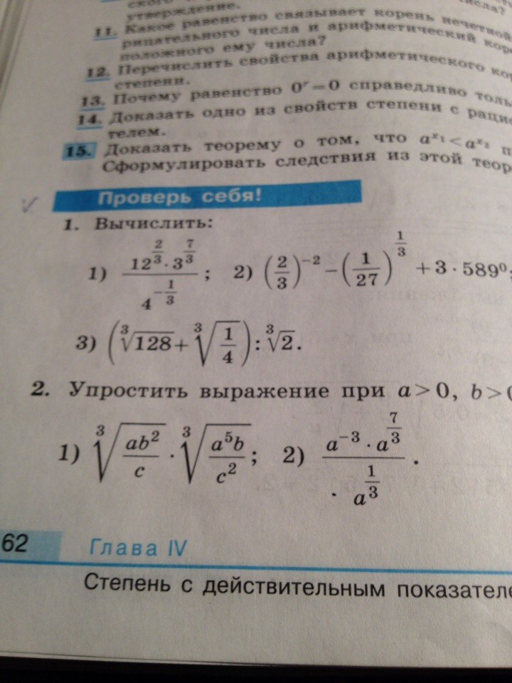 1) 4^(2/3) * 3^(2/3) * 3^(7/3)/4^(-1/3)=4^(2/3-(-1/3)) * 3^(2/3+7/3)=4^(3/3) * 3^(9/3) = 4^1 * 3^3 = 4 * 27 = 108