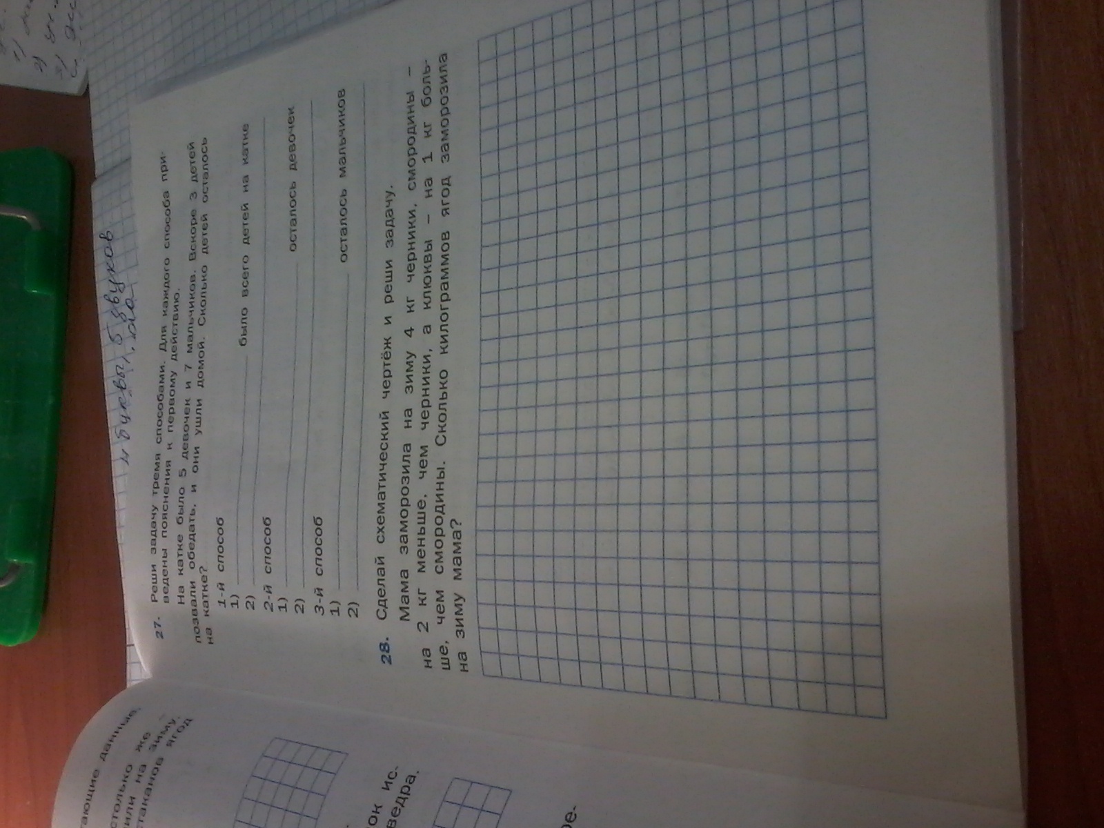 1)4-2=2(кг)- смородины 2) 2+1 = 3 (кг) - клюквы 3) 4+2+3=9 (кг) мама закрыла на зиму