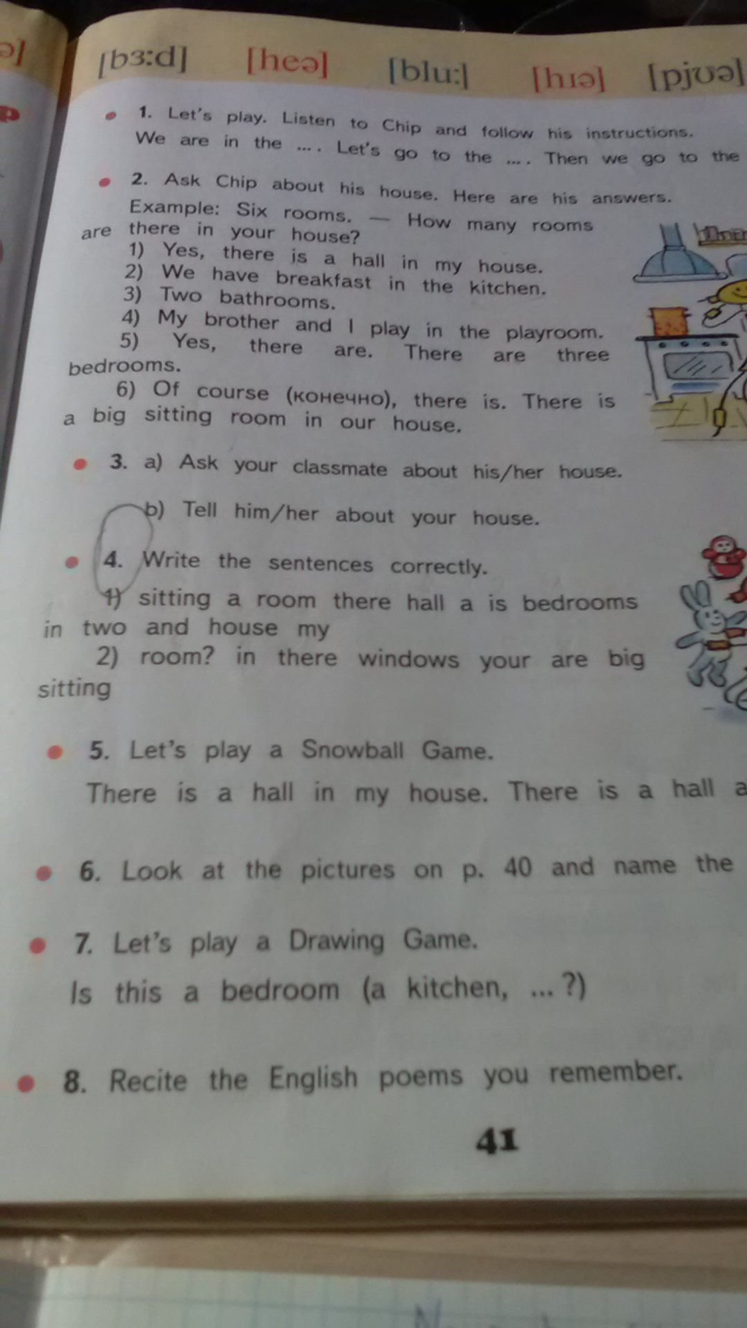 1.There are a sitting room, a hall and two bedrooms in my house.