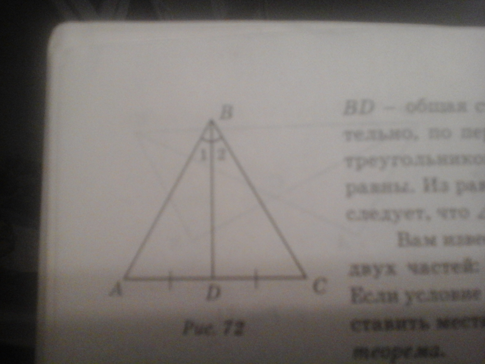 На рисунке 72 AD=DC, BD перпендикулярно AC. Докажите, что треугольник ABC равнобедренный.