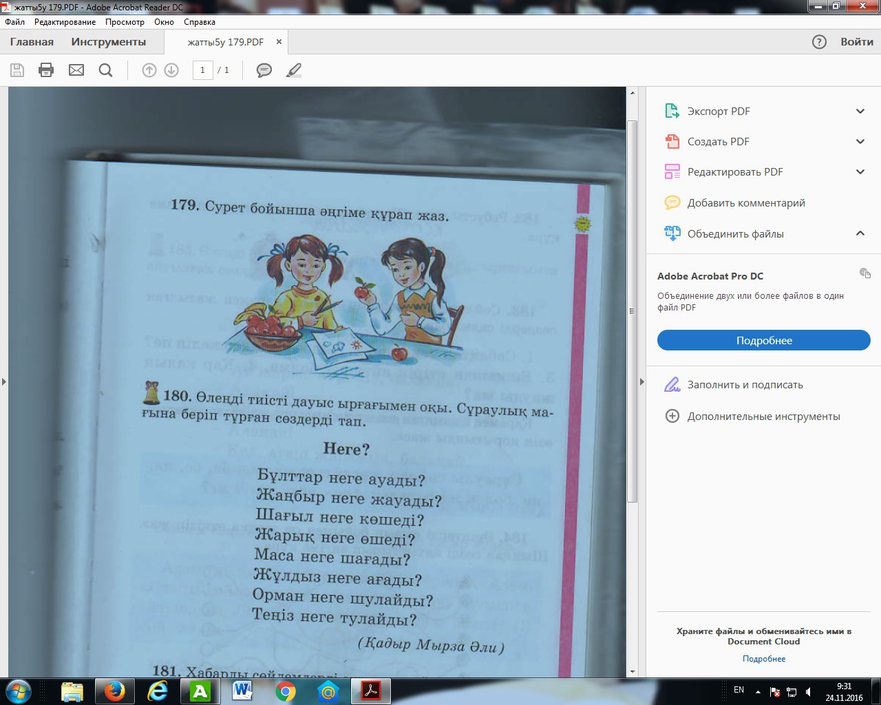 Мадина:,,Қандай тамаша! Саған 5 қояды уəде беремін.,,