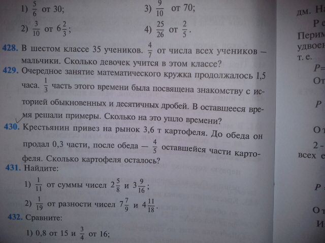 1) 3,6 * 0,3 = 1,08(т) картофеля продано до обеда.